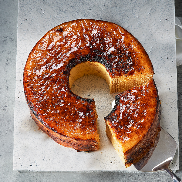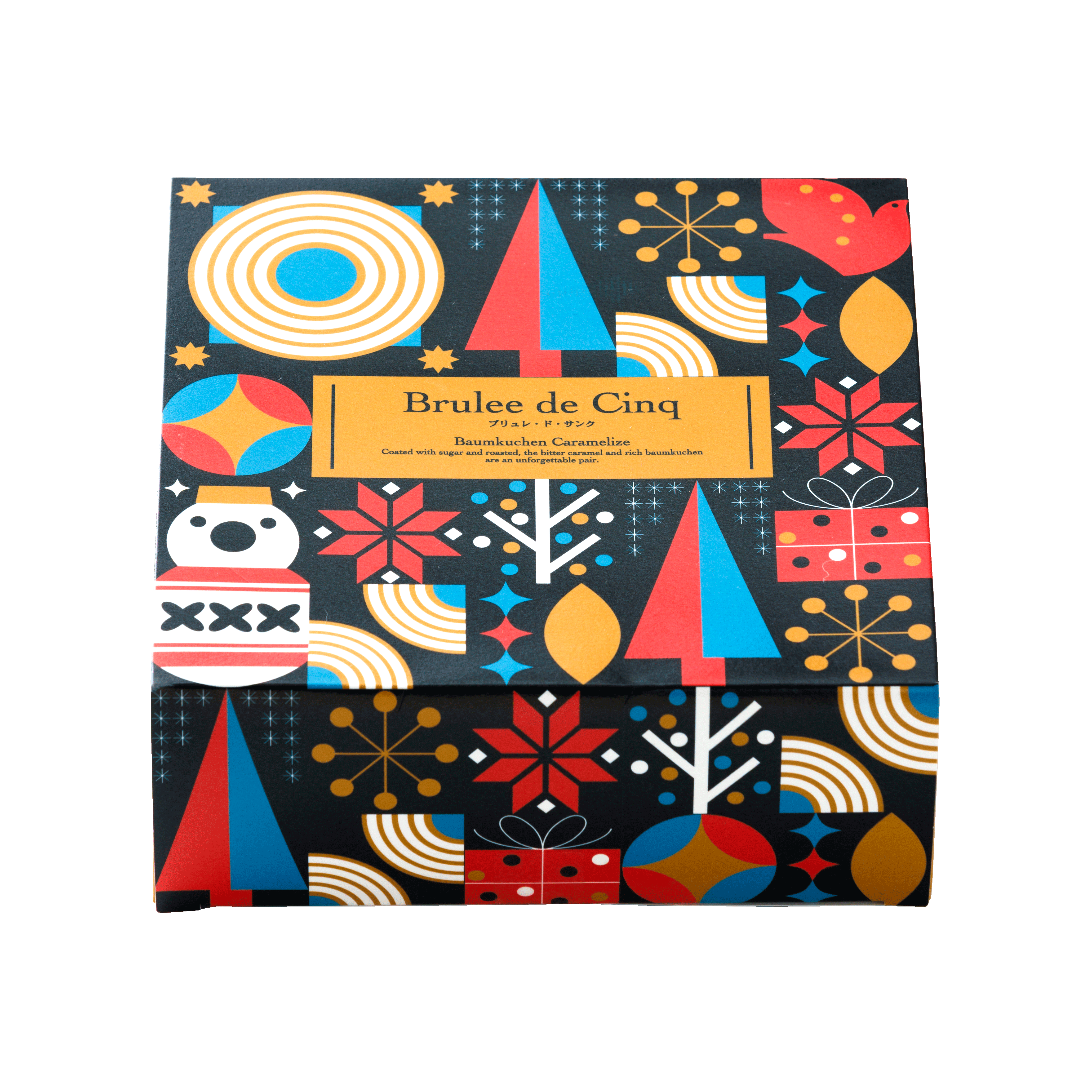 生地の表面に砂糖をまぶし直火でキャラメリゼして仕上げたバウムクーヘン「ブリュレドサンク」のクリスマス限定パッケージです。