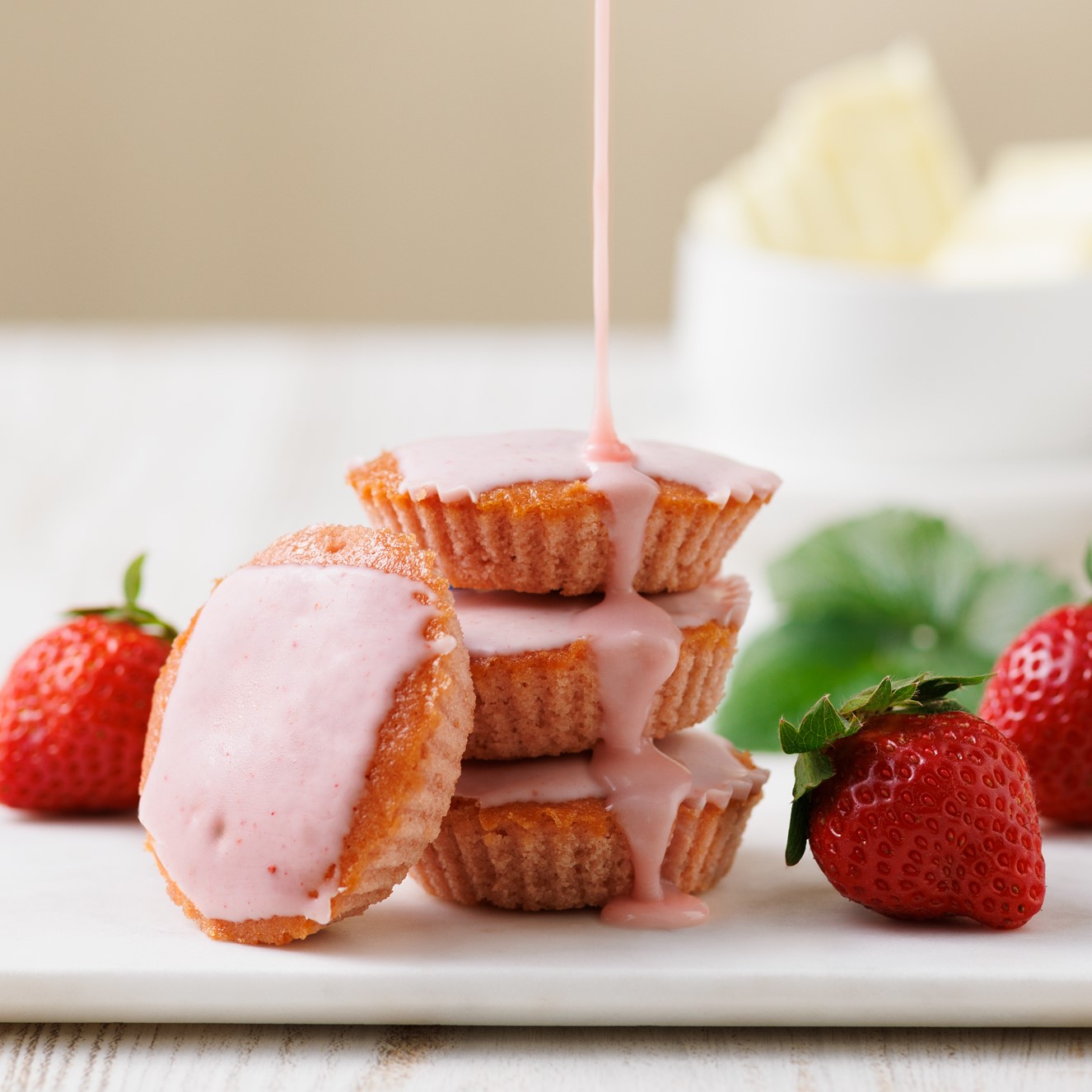 福岡県産あまおう苺のピューレを生地に使用し、しっとりと焼き上げたいちごケーキです。