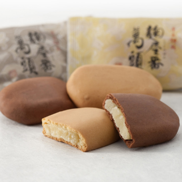 香ばしいアーモンド風味の白餡を、しっとりとした饅頭生地で包みました。