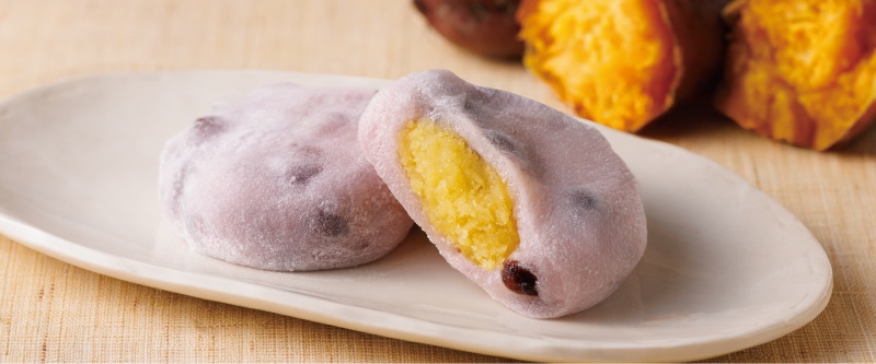 鹿児島県産の安納いもを使った風味豊かな餡を、石村萬盛堂自慢の塩豆大福の生地で包みました。