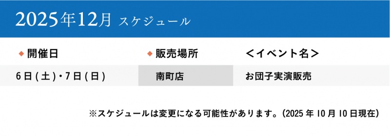 【お知らせ】お団子キャラバンの出店スケジュールについて