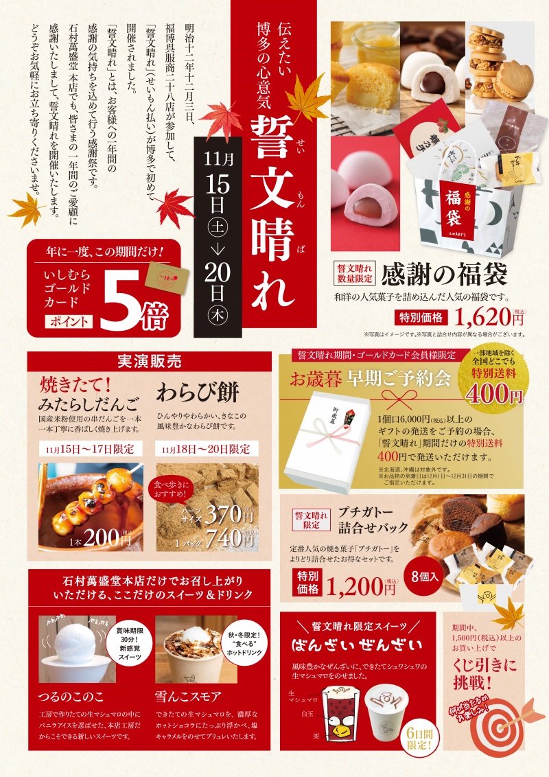 【催事情報】石村萬盛堂本店「誓文晴れ」を開催します|11月15日~20日