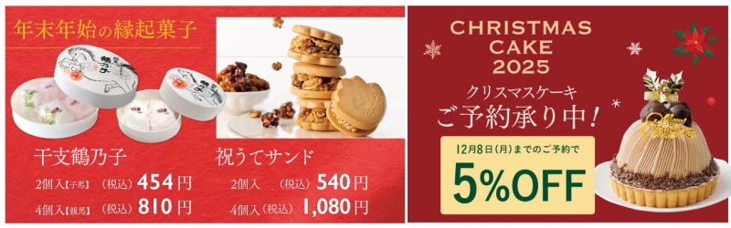 クリスマスケーキのご予約が5%OFFとなるキャンペーンを実施中です。
