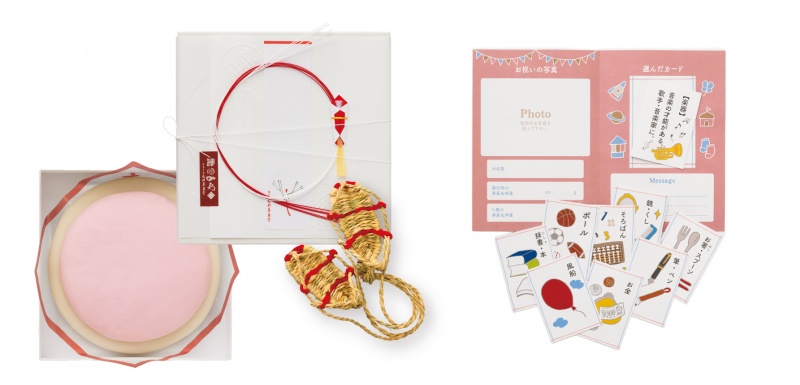 紅白二段の丸餅に、「選び取りカード」、一歳をお祝いする記念台紙を同梱した、一生に一度のお祝いにふさわしい誕生餅セットです。