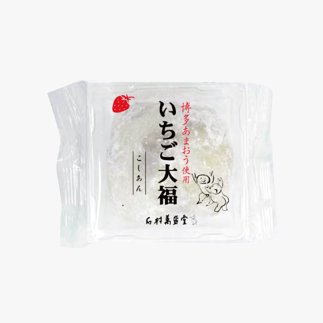 気温の寒暖差が大きいことから美味しいいちごが育つ福岡県・八女地区などの厳選した産地で育った「博多あまおう」を丸ごと一粒使用した いちご大福です。酸味と甘みのバランスが良い「博多あまおう」を、和菓子職人が丁寧に仕上げた滑らかなこしあん、もちもち食感の求肥(ぎゅうひ)で包みました。口の中に甘酸っぱい果汁が広がる、旬のいちご大福を全国へお届けします。