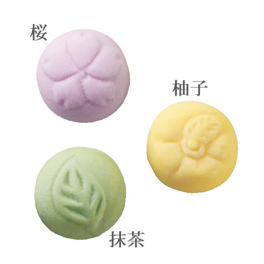 和を感じる「桜(チェリージャム)、抹茶(抹茶クリーム)、柚子(柚子ジャム)」の3種の味わいが楽しめる、ふわっとやさしい食感のマシュマロです。マシュマロは素材に合わせて型作り、目で見て楽しめます。和モダンのパッケージは、ホワイトデーや春のギフトにもおすすめです。