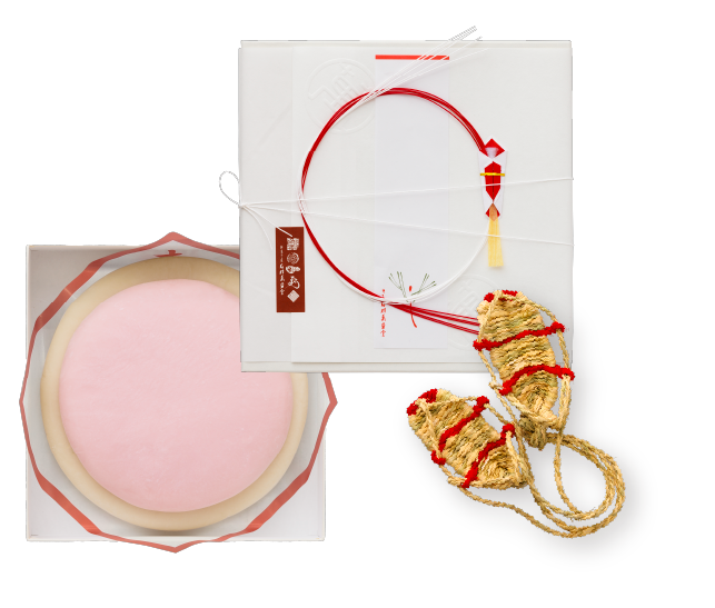 同梱した、一生に一度のお祝いにふさわしい誕生餅セットです。